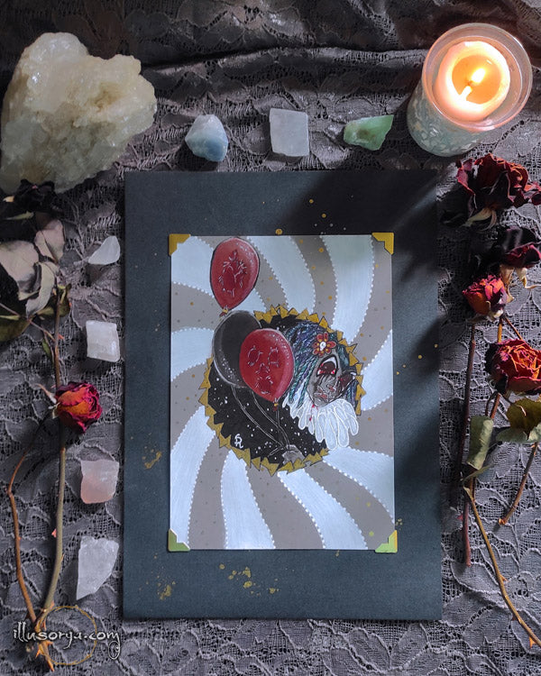 L'illustrazione è montata su "passe-partout", nero e china oro 21x30cm, pronta da essere incorniciata.